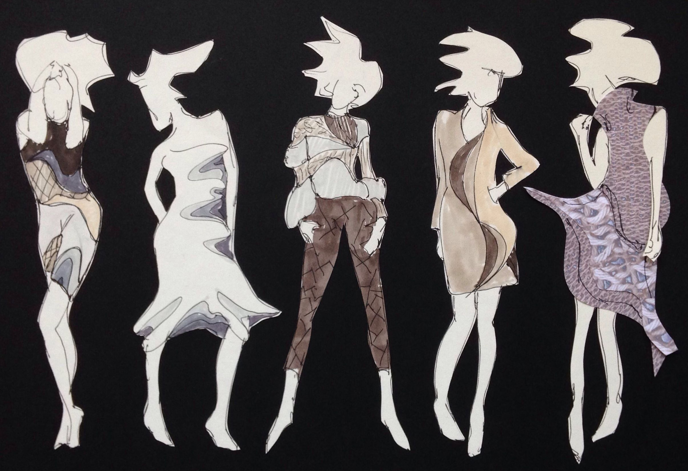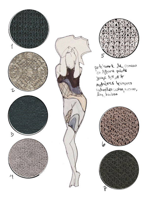 Ces trois aspects sont transformés en vêtements avec des textures riches et variées en formes de tranches ondulantes ou cristaux.